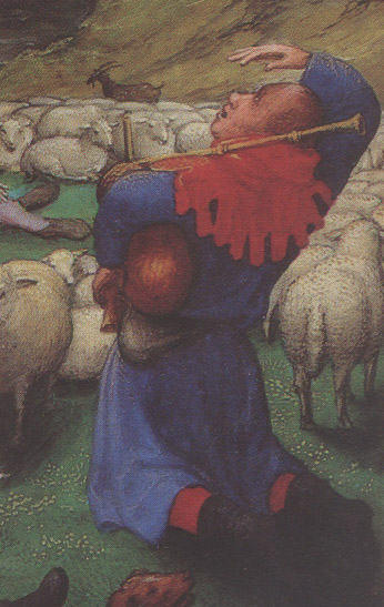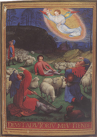 Horenbout: Annunciation of the Shepherds, Hours of the Virgin Fol.91rBritish Museum