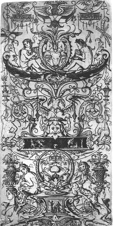 This image is exaclty like a work by Giovanni Antonio de Brescia, just a reversed image. You will find a link to that image back on the Etchings 2 main table.
