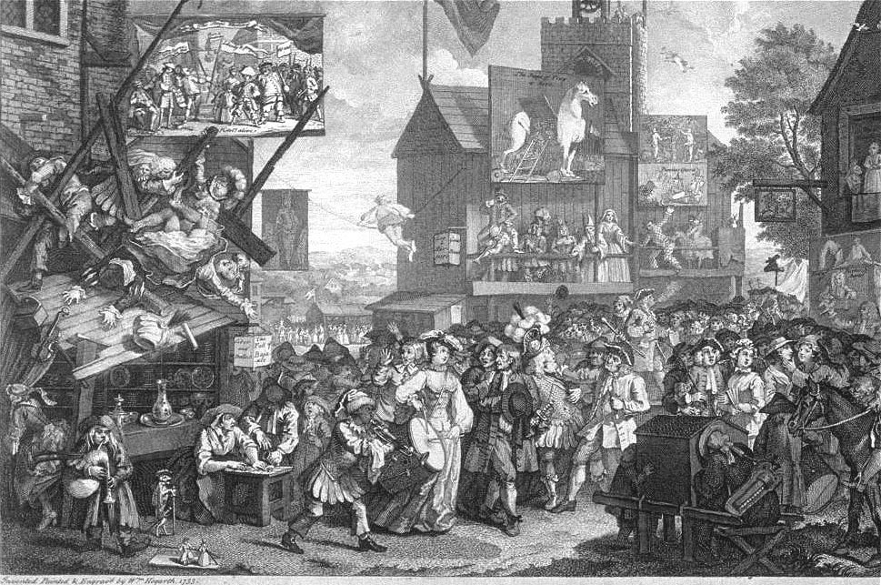 Southwark Fair, William Hogarth 1733 painting housed in the Cincinnati Art Museum where they also have one of Hogarth's engravings. I sure would like to have a better copy of the painting.