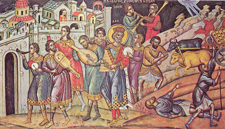 Wall painting at Stravronikita Monastery of Mount Athosby Theophanis from Crete, 1546 A.D.Thanks to Sean Stewart for this one.