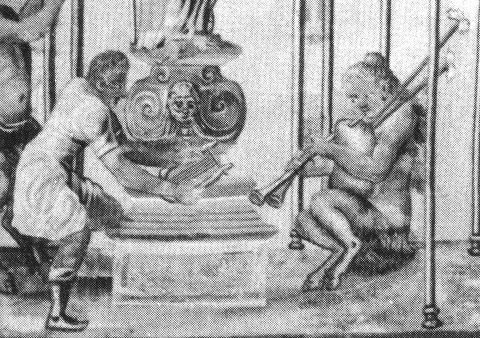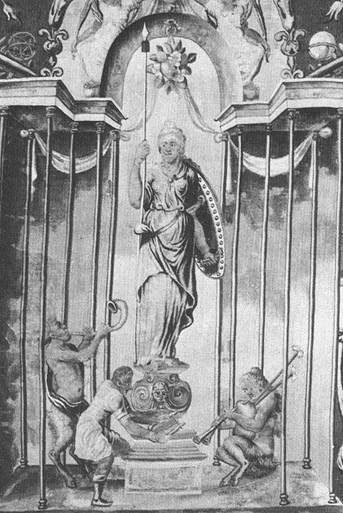 Cette tapisserie sort certainement du meme atelier anversois de Michel Wauters qui a signe la tenture a grotesques du chateau Royal de Copenhague.