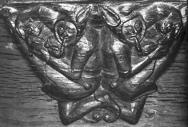 "as promised, have attached a picture of the catbagpipes. They come from misericords in Boston StumpUK and they were carved roundabout 1390. If you wantthe exact location, the carving is to be found on theNorth side choir stalls, lower row, 8 seats from theeast."