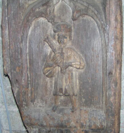 Double Chanter Bagpipe Carvingcarving on oak, Church of St. Eustacius, Tavistock